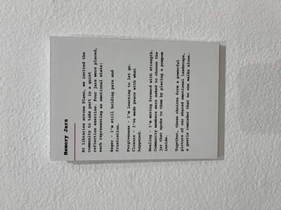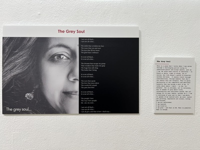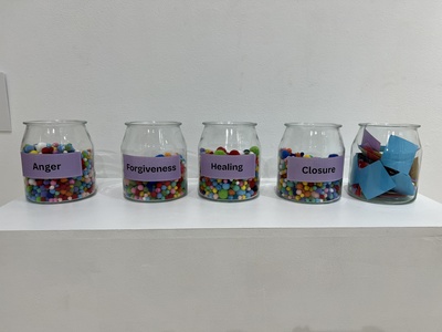 From the exhibit flyer: "We all carry pieces of our past - some bright, some heavy, some that still sting. Friendships that ended, family bonds that shifted, places we once called home - even when they break, they leave something behind in us. This project is about those pieces. About how the broken and unfinished moments shape who we are just as much as the joyful ones.